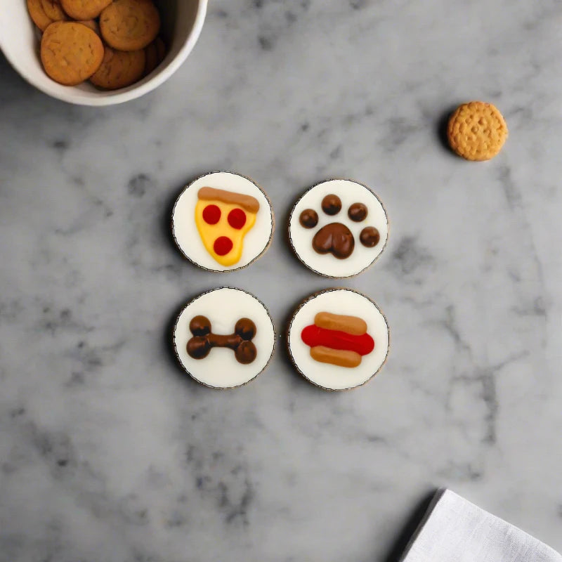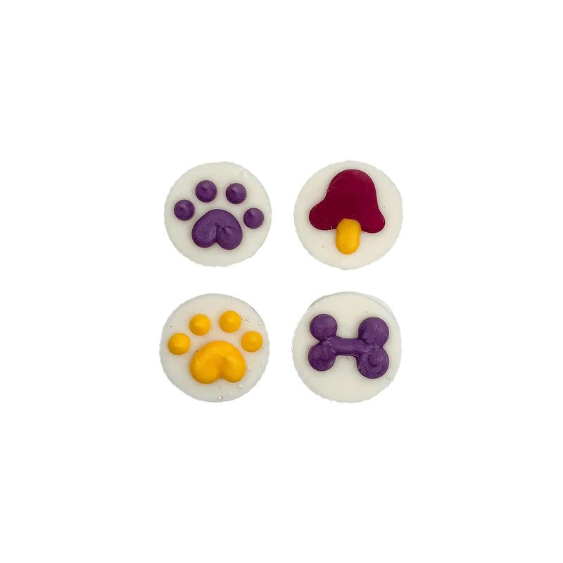 Intended as a treat or reward, not food. Supervise your dog while eating to ensure the treat is broken into small pieces of an appropriate size for your dog before consuming. If the treat is consumed quickly and in large pieces, there is risk of choking or gastrointestinal blockage. Color transfer may occur.