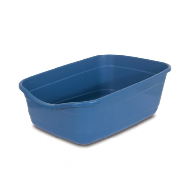 The Petmate® Giant Litter Box offers a great solution for large cats or multiple cats. The oversized, open style also accommodates cats who do not like the confines of a hooded pan or those who require plenty of room. Constructed using a durable, odor-resistant plastic it is designed to hold large amounts of litter and features a sloped entry that allows older cats and kittens easy access. The high sides help to contain litter scatters. Can hold over 30 lbs. of litter for less frequent changes, so you can spend more time with your cat and less time on cleanup. When it is time to change the litter the side rims give you a comfortable grip whenever you need to move it. Made using 95% pre-consumer recycled plastic. Made in the USA. Due to the large size of this pan litter liners are not available.