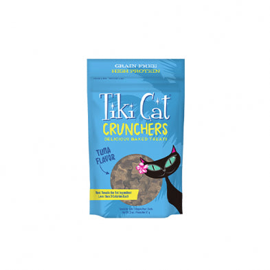 Tiki Cat® Crunchers cat treats are grain-free, perfectly-sized, meaty treats for your carnivorous cat. A high protein, low calorie delicious crunchy treat. No grains, added gluten, animal by-products corn, wheat. With pumpkin to aid in digestion. Salmon oil and flaxseed to help promote shiny coats. No artificial colors, flavors, or preservatives.