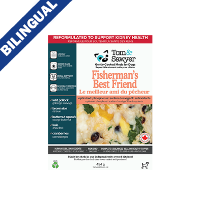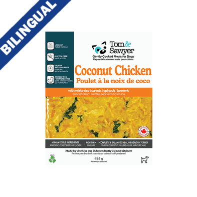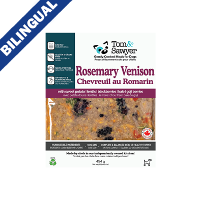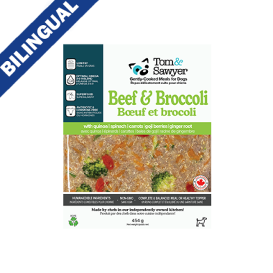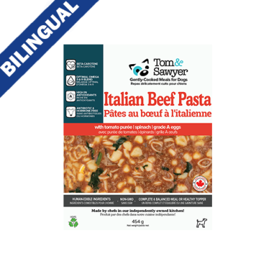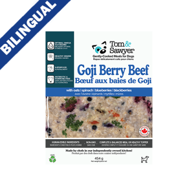 Tom&Sawyer’s gently-cooked meals for dogs are made by trained chefs in their independently owned Canadian pet meals kitchen following strict adherence to regulations for making human food, using only top restaurant-quality ingredients, preservative-free and packaged frozen. Each recipe is expertly developed by their pet nutrition team to be complete and balanced. All meals include Tom&Sawyer's Digestive Aid Blend and custom human food-grade vitamin&mineral, as well as anchovy fish oil and Canadian hemp seed oil for perfectly balanced Omega 3-6-9 polyunsaturated fatty acids, which help reduce inflammation, improve joint mobility and clear skin conditions.